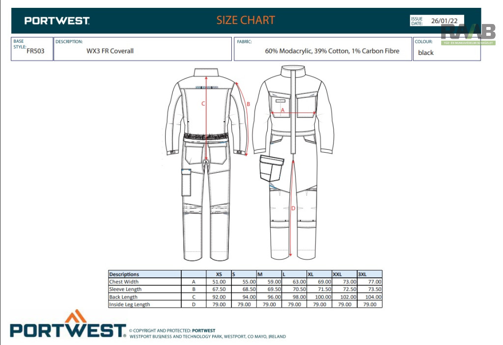 Korszerű lángálló overál, amely a saját Modaflame 280gm anyagunkból készült.