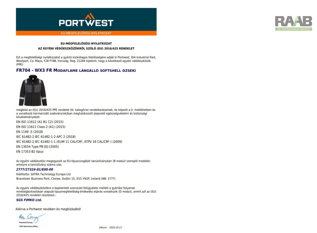 EN ISO 11612 A1 B1 C2
