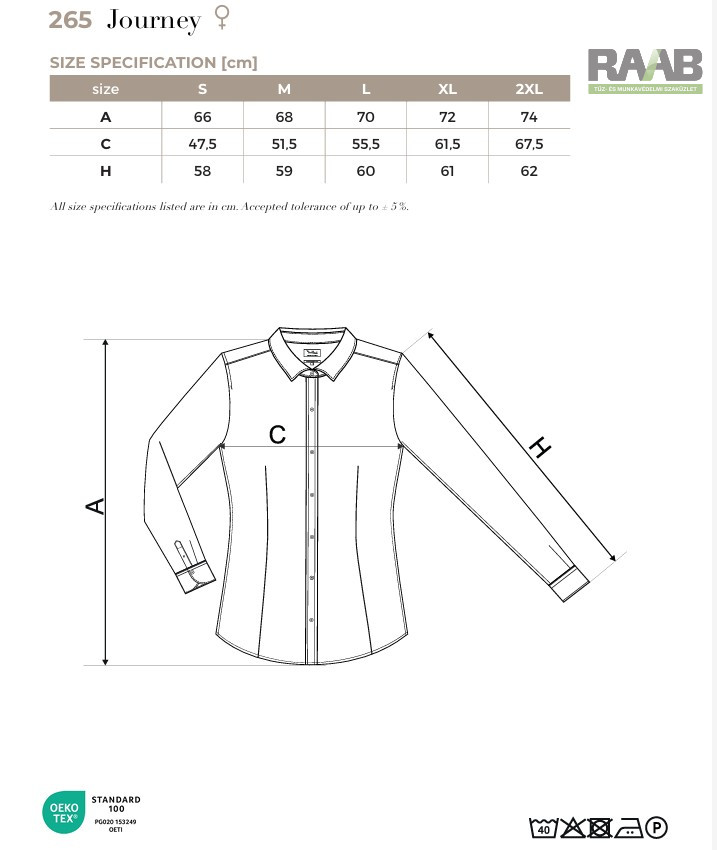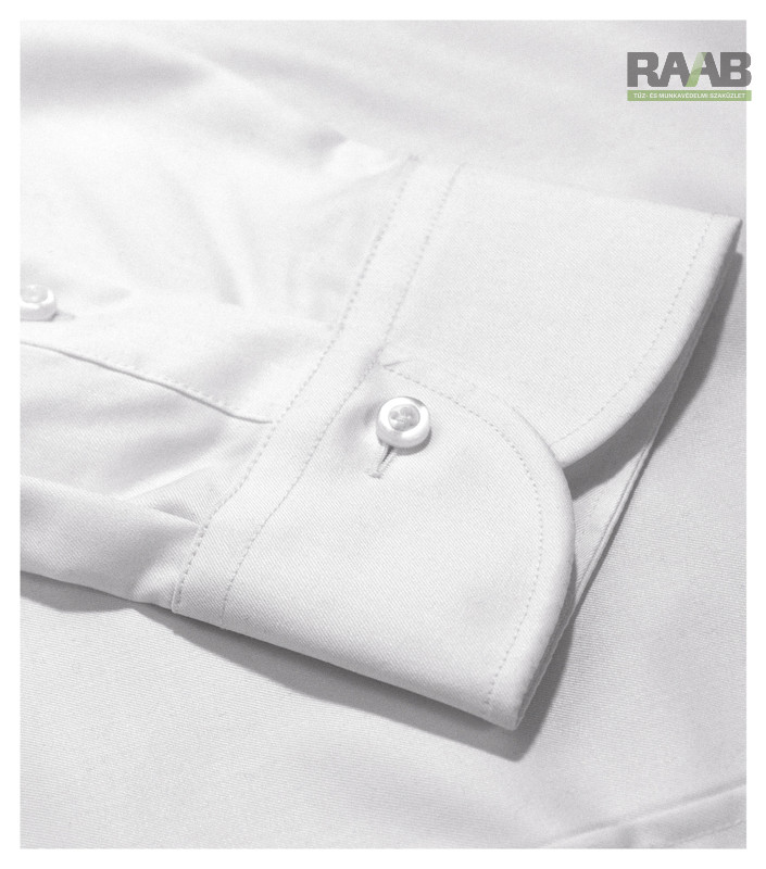 - Hosszú ujjú, kerek mandzsettával és 2 gombbal.